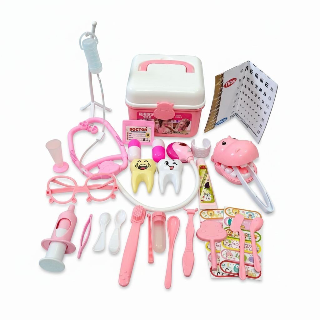 Kids Dentist Doctor Kit – 30Pcs Pink Dental Playset Learning Toy