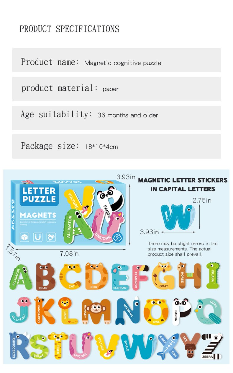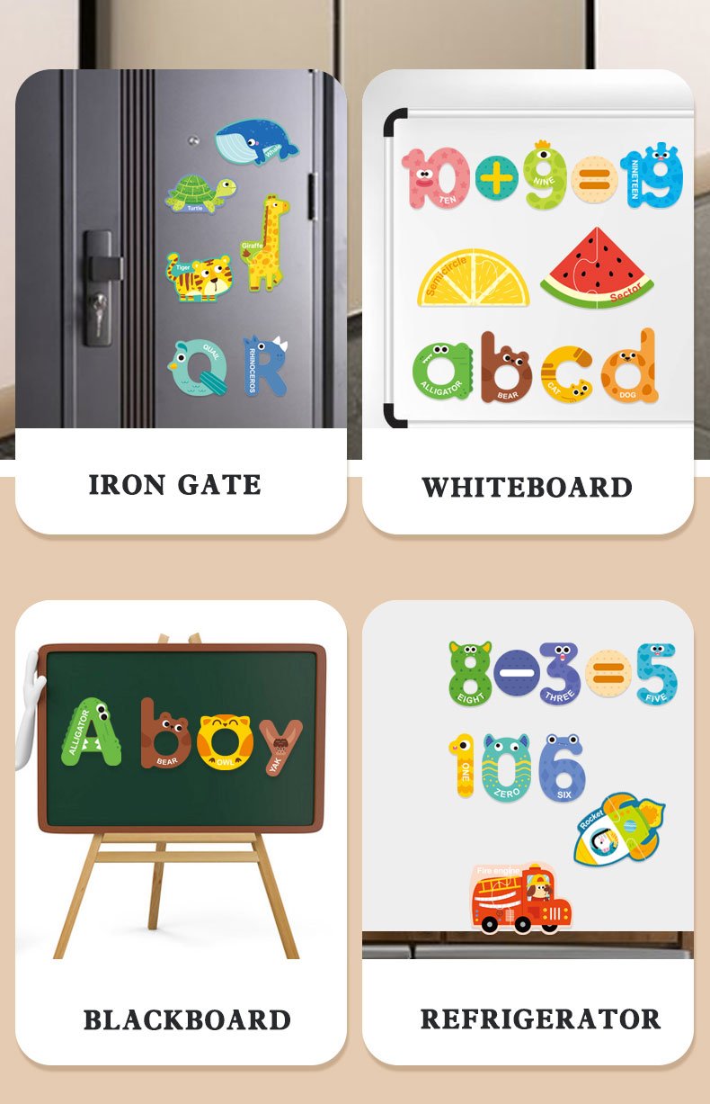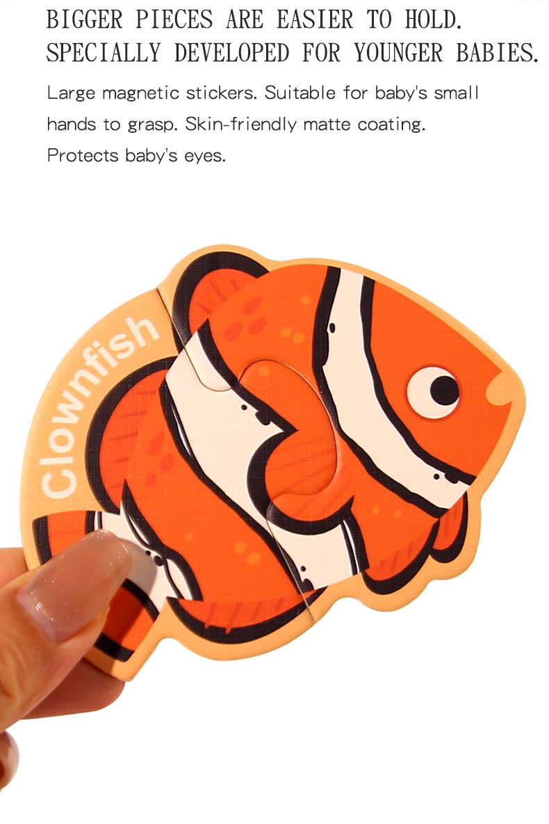 প্রতিটি অংশে রয়েছে বড় এবং স্পর্শবান্ধব ম্যাগনেটিক স্টিকার, যা যেকোনো লোহার পৃষ্ঠে সহজে সংযুক্ত করা যায়। শিশুদের হাতে ধরতে সহজ এবং মেট ম্যাট কোটিং চোখের জন্য নিরাপদ। নরম, ভিজ্যুয়ালি আকর্ষণীয় ও স্পর্শবান্ধব প্যাটার্ন শিশুদের শেখার প্রক্রিয়াকে আরও আনন্দদায়ক করে তোলে।