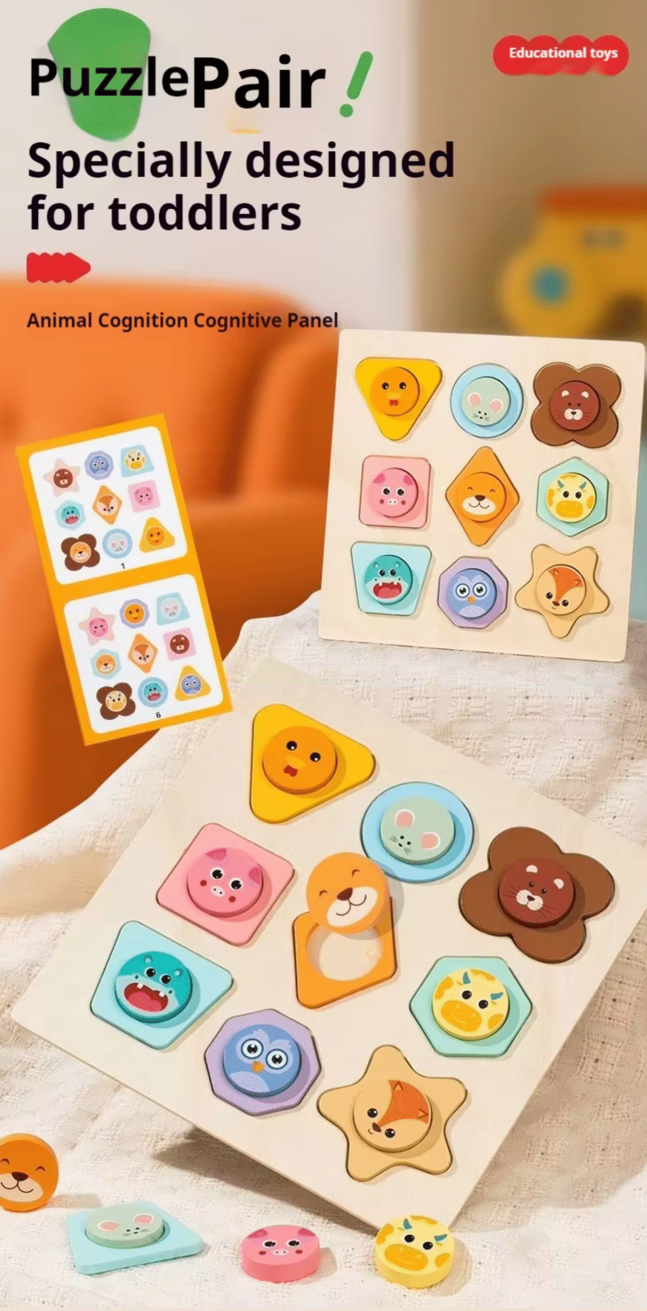 Montessori Animal Face Board হলো ছোট শিশুদের জন্য একটি শিক্ষামূলক ও অতি মজার পাজল খেলনা। বোর্ডটিতে রয়েছে বিভিন্ন রঙিন প্রাণীর মুখ—যেমন বিড়াল, খরগোশ, সিংহ, বাঘ, বানর, পেঁচা ও আরও অনেক কিউট ক্যারেক্টার।