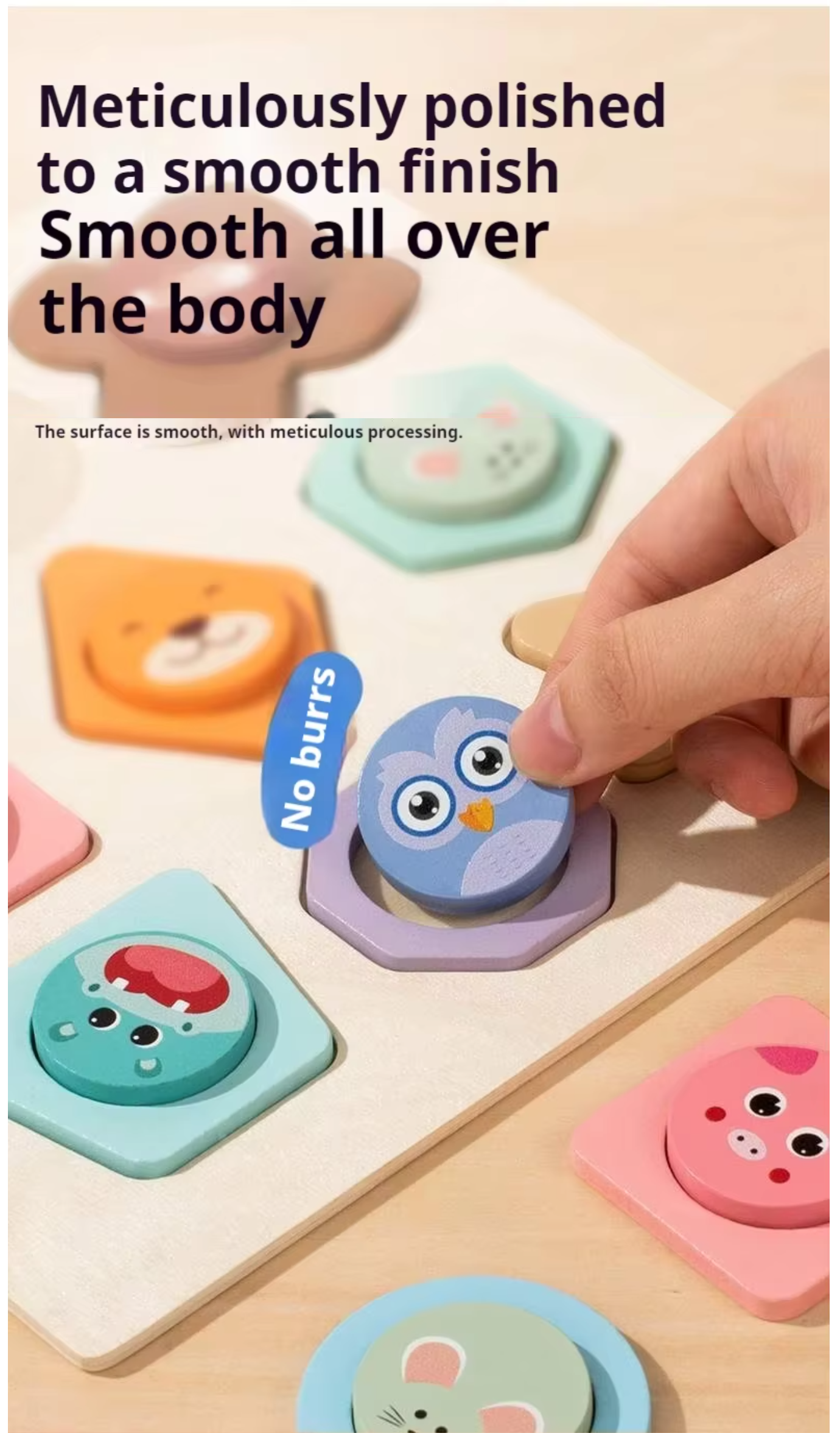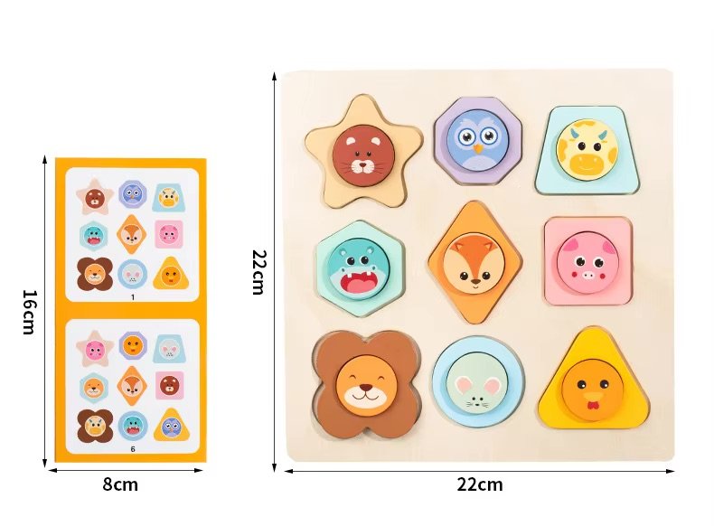 শিশুরা অ্যানিমেল ফেসটি সঠিক আকারের বেস ব্লকে বসিয়ে ম্যাচিং স্কিল, শেপ রিকগনিশন ও পর্যবেক্ষণ ক্ষমতা উন্নত করে। প্রতিটি ব্লকের মসৃণ কাঠের নির্মাণ ও উজ্জ্বল রঙ শিশুদের মনোযোগ ধরে রাখে দীর্ঘ সময়।