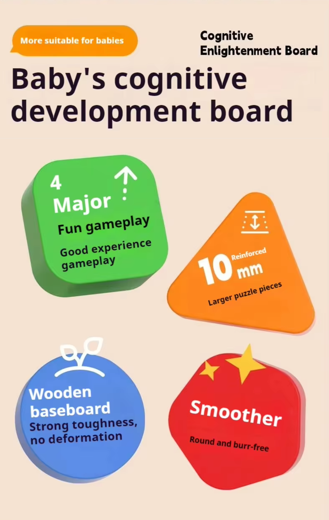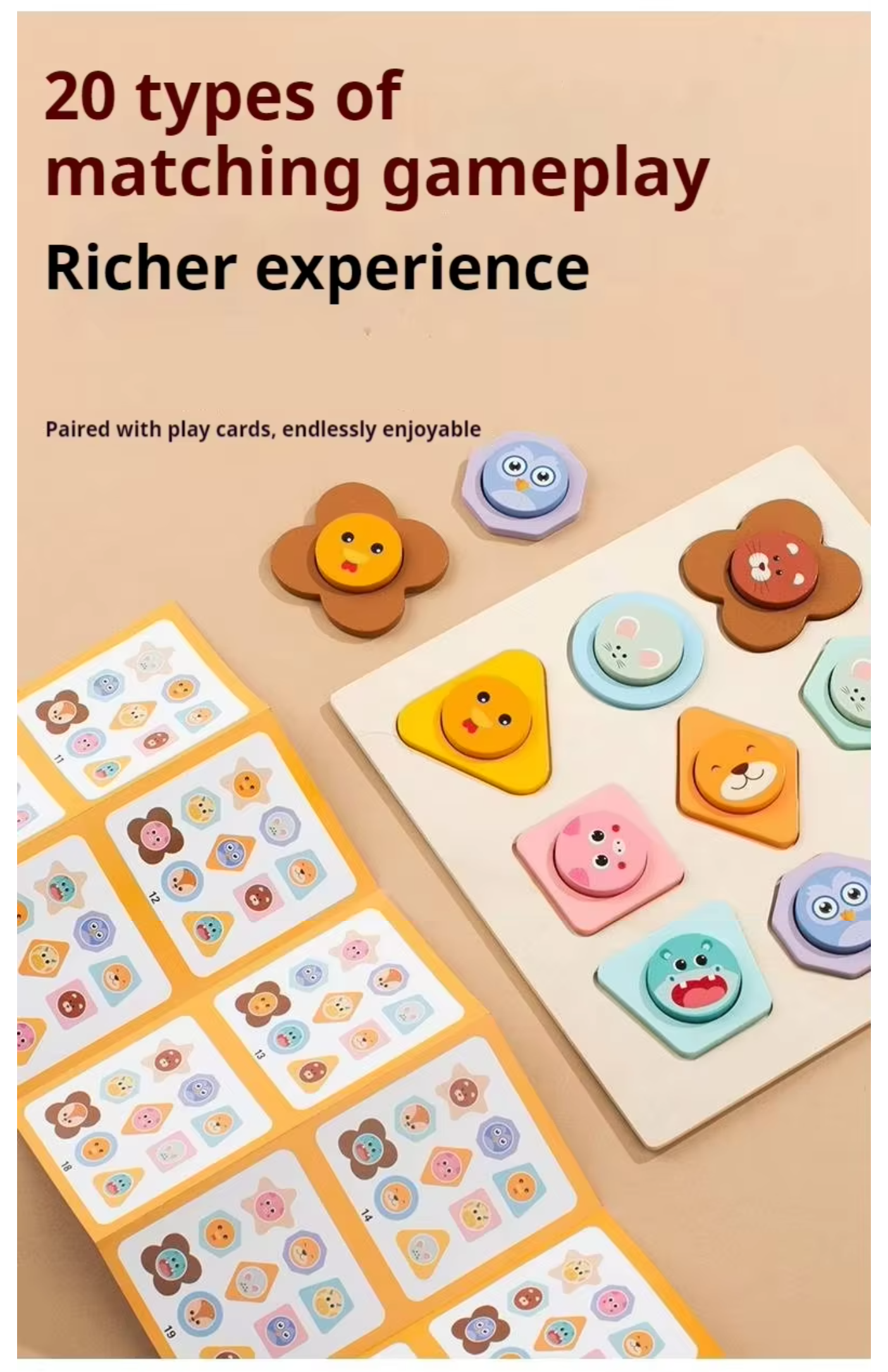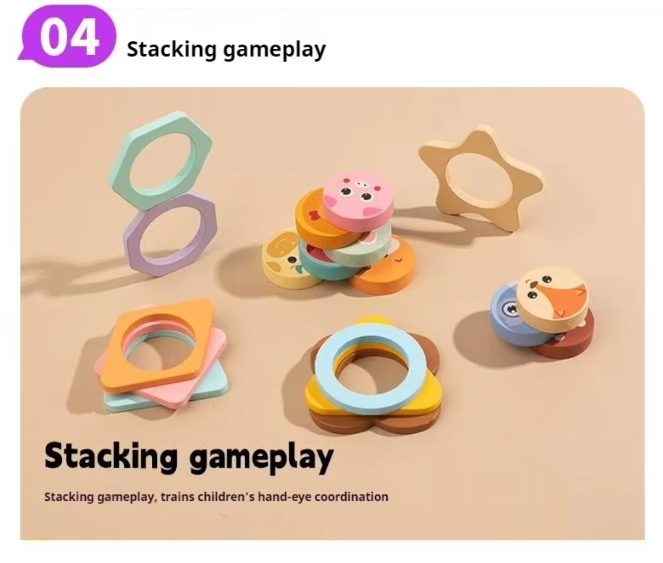 শিশুরা অ্যানিমেল ফেসটি সঠিক আকারের বেস ব্লকে বসিয়ে ম্যাচিং স্কিল, শেপ রিকগনিশন ও পর্যবেক্ষণ ক্ষমতা উন্নত করে। প্রতিটি ব্লকের মসৃণ কাঠের নির্মাণ ও উজ্জ্বল রঙ শিশুদের মনোযোগ ধরে রাখে দীর্ঘ সময়।