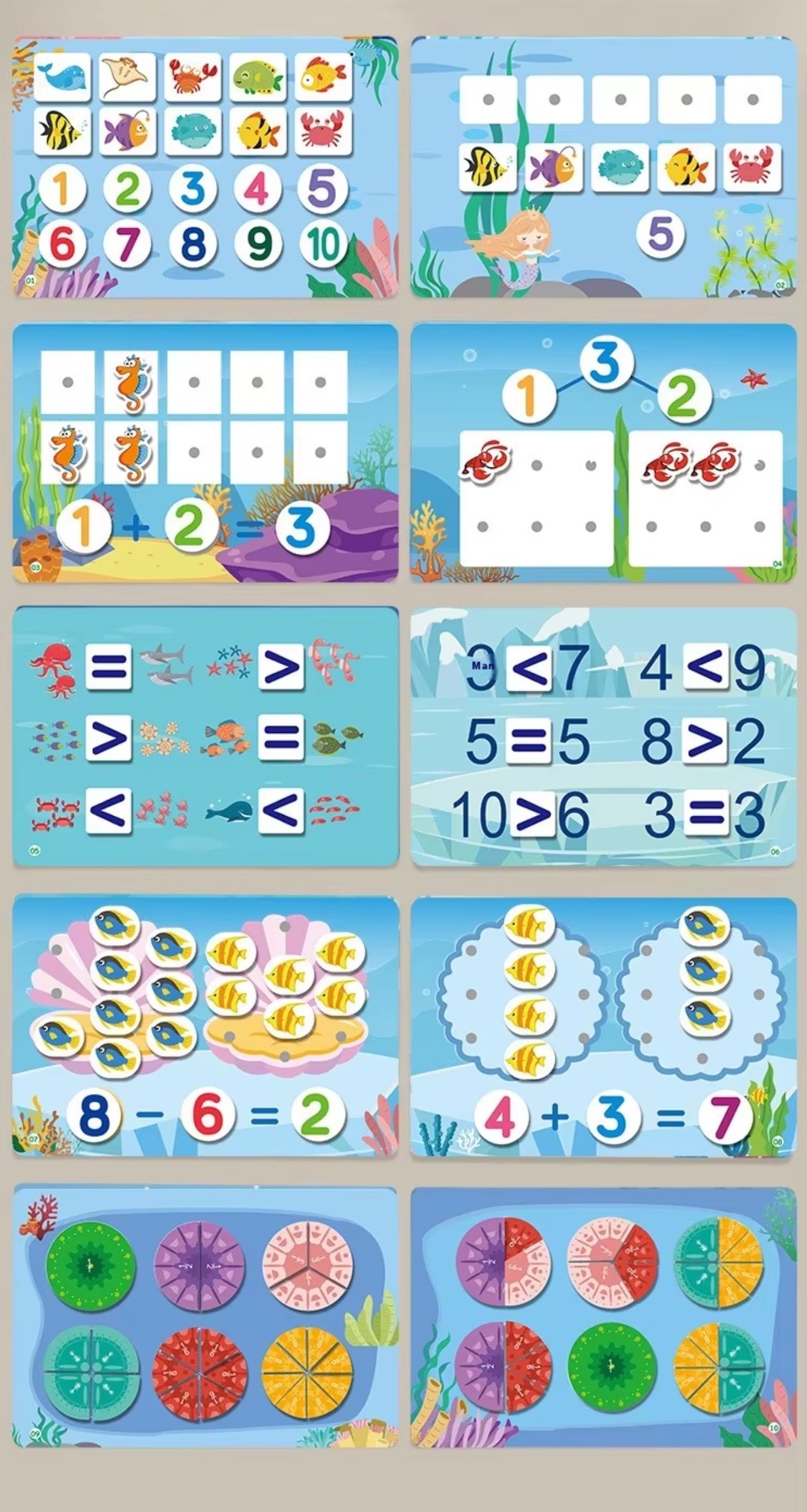 শিশুরা পুনরায় ব্যবহারযোগ্য স্টিকার ব্যবহার করে বিভিন্ন সমুদ্র প্রাণীর সাথে সংখ্যা মিলাতে পারবে, গুণ-যোগের সহজ ধারণা ধরতে পারবে এবং হ্যান্ড-আই কোঅর্ডিনেশন, লজিক্যাল থিংকিং ও কগনিটিভ স্কিল উন্নত করবে।
