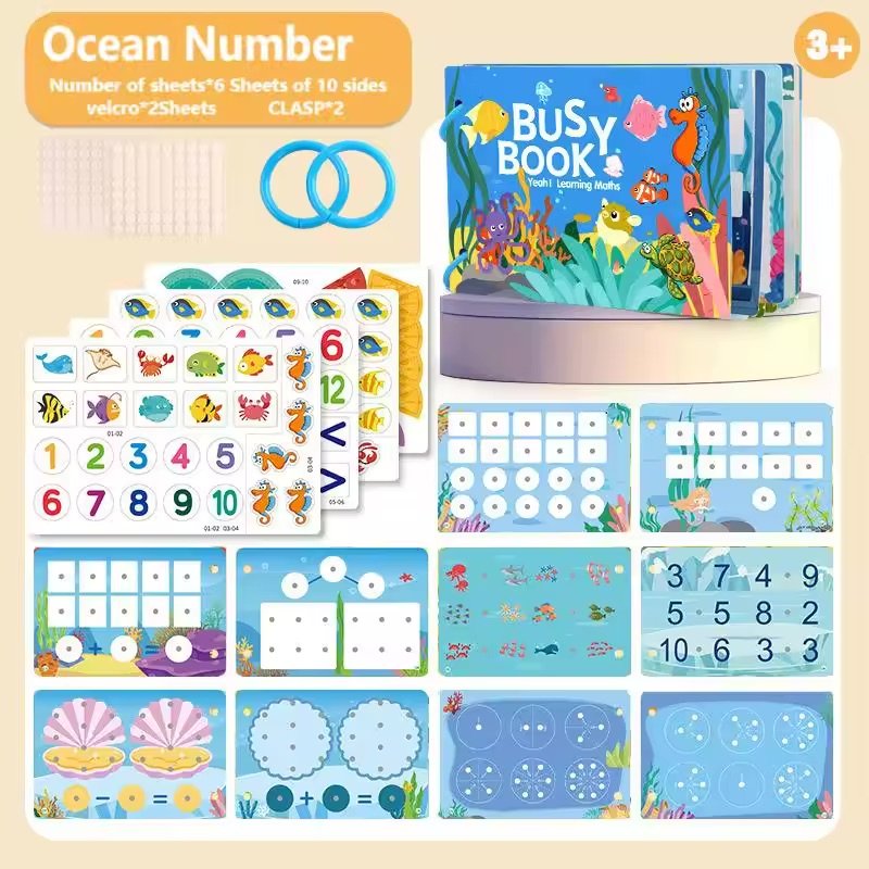 Ocean Number Math Busy Book হলো শিশুদের সংখ্যাজ্ঞান ও প্রাথমিক গণিত শেখানোর একদম মজাদার ও Montessori-অনুপ্রাণিত Quiet Book। পুরো বইটি সাজানো হয়েছে সাগর থিমে, যেখানে রঙিন মাছ, অক্টোপাস, সি-টার্টল, ক্র্যাব এবং আরও অনেক সমুদ্রজীবের সাথে বাচ্চারা শিখবে সংখ্যা চেনা, গণনা, ম্যাচিং ও বেসিক ম্যাথ কনসেপ্ট।
