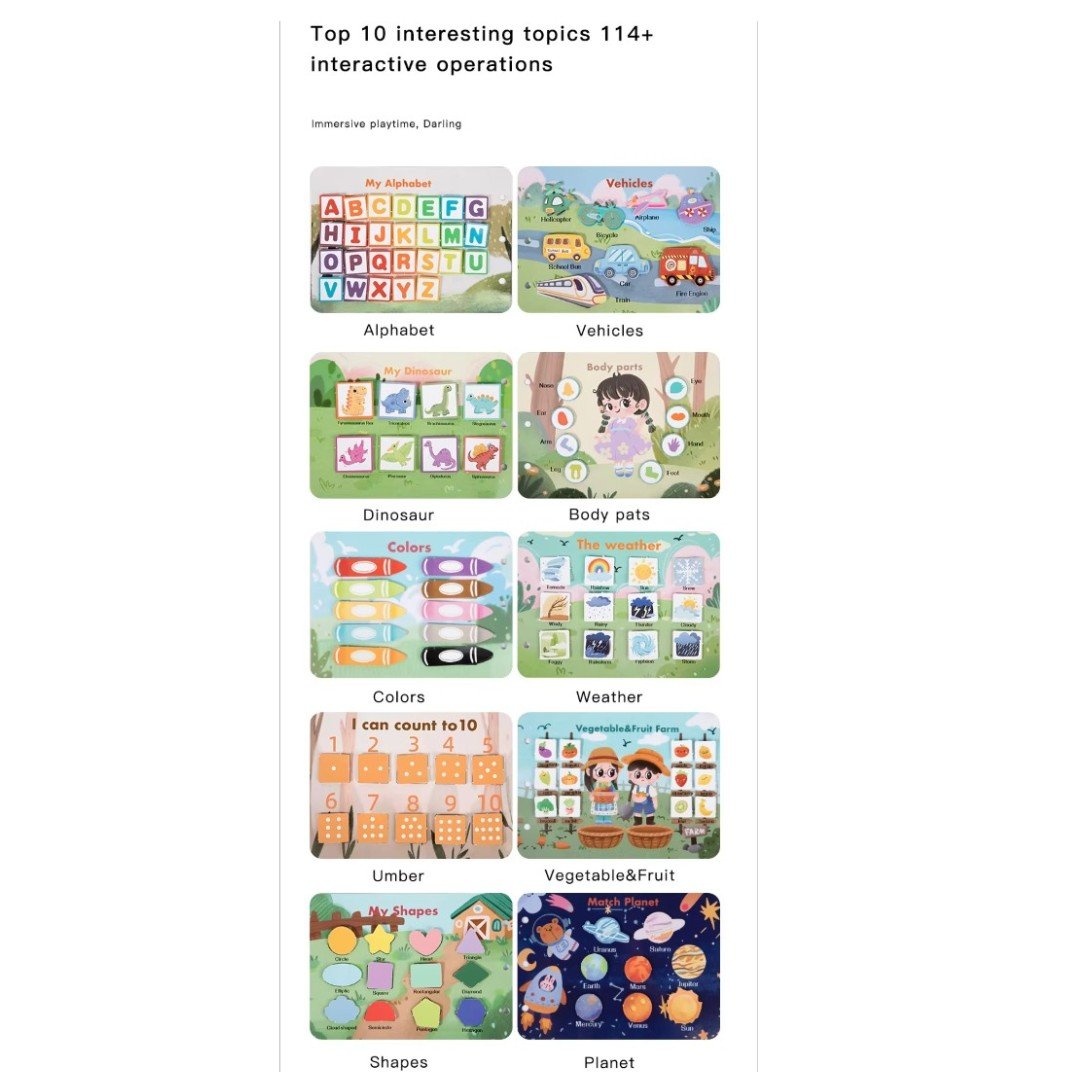 এই একটিমাত্র বইতেই রয়েছে ১০টি গুরুত্বপূর্ণ শেখার থিম—Alphabet, Number, Shapes, Vehicles, Animals, Colors, Weather, Body Parts, Fruits & Vegetables এবং Planet। ফলে আপনার বাচ্চা খেলার মতো করেই ধাপে ধাপে বিভিন্ন বিষয় শিখতে পারে।