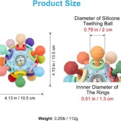 ভেতরের র্যাটল সাউন্ড, ক্লিকিং ফিচার এবং 360° ঘোরানো বল শিশুর কৌতূহল বাড়ায় এবং দীর্ঘ সময় ধরে মনোযোগ ধরে রাখতে সাহায্য করে। সহজে ধরার মতো ডিজাইন হওয়ায় বাচ্চা নিজেই খেলতে পারে—যা তার grasping, reaching, fine motor skills উন্নত করে।